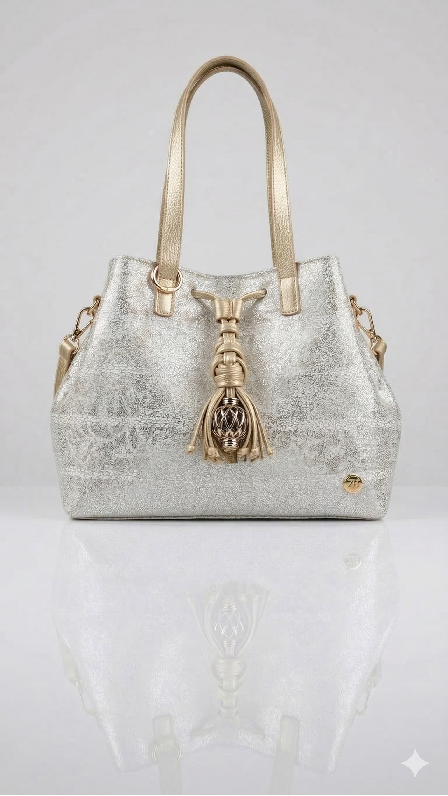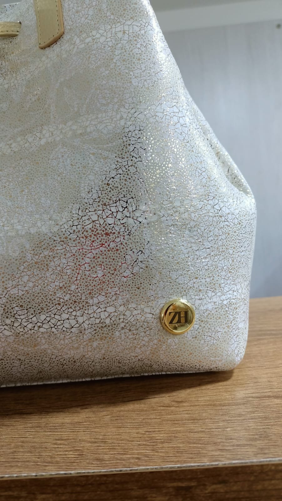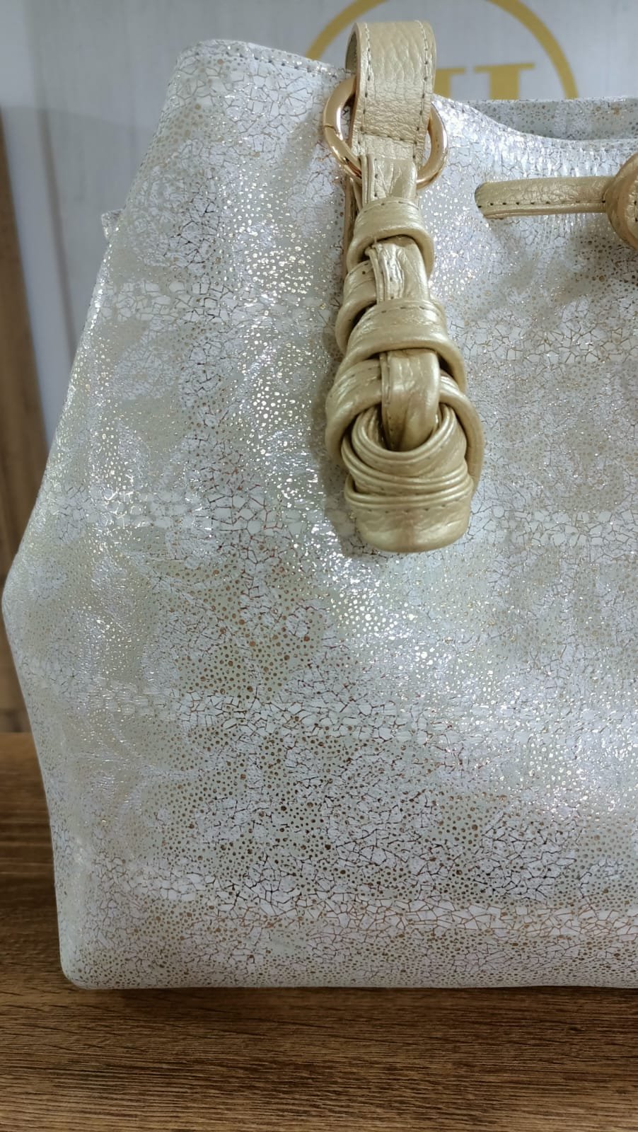 Pensado para la mujer que busca un accesorio que ilumine su presencia, este bolso combina la frescura de los tonos níveos con la calidez del oro, logrando una pieza de marroquinería de alto nivel estético.