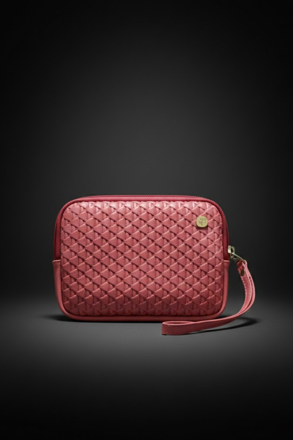 Esta billetera en cuero legítimo combina un diseño tejido sofisticado con la vitalidad del color coral, perfecta para mujeres que aman lo clásico con un toque audaz.