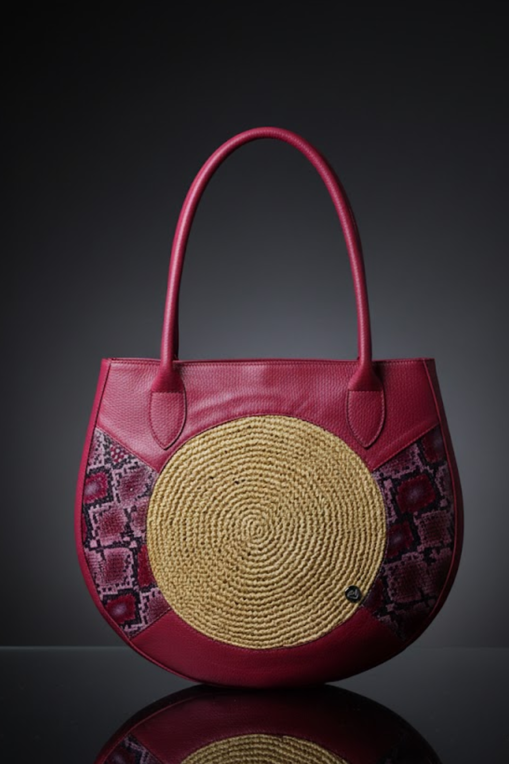 • Material: Combinación de cuero 100% natural, tejido artesanal tipo fique y detalles en textura reptil.