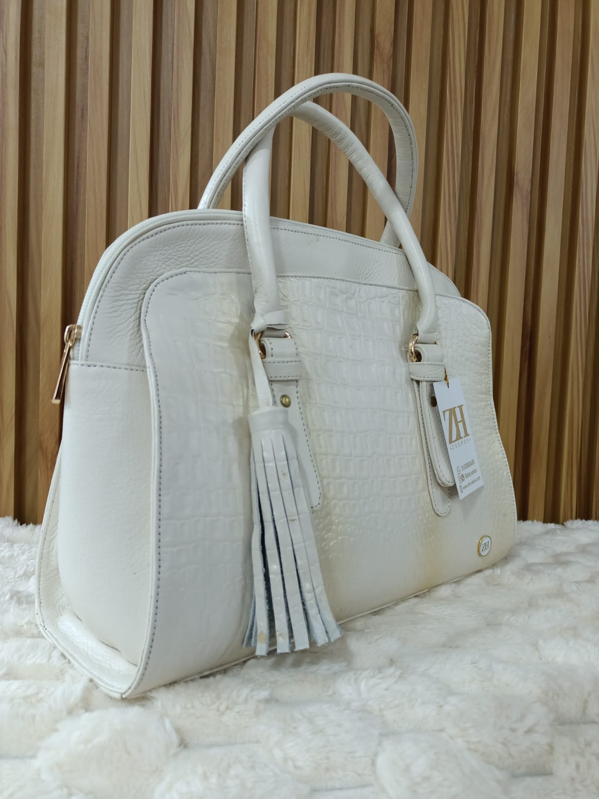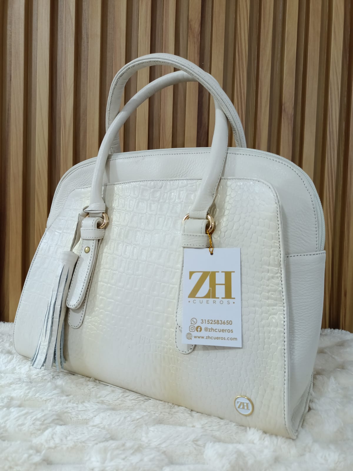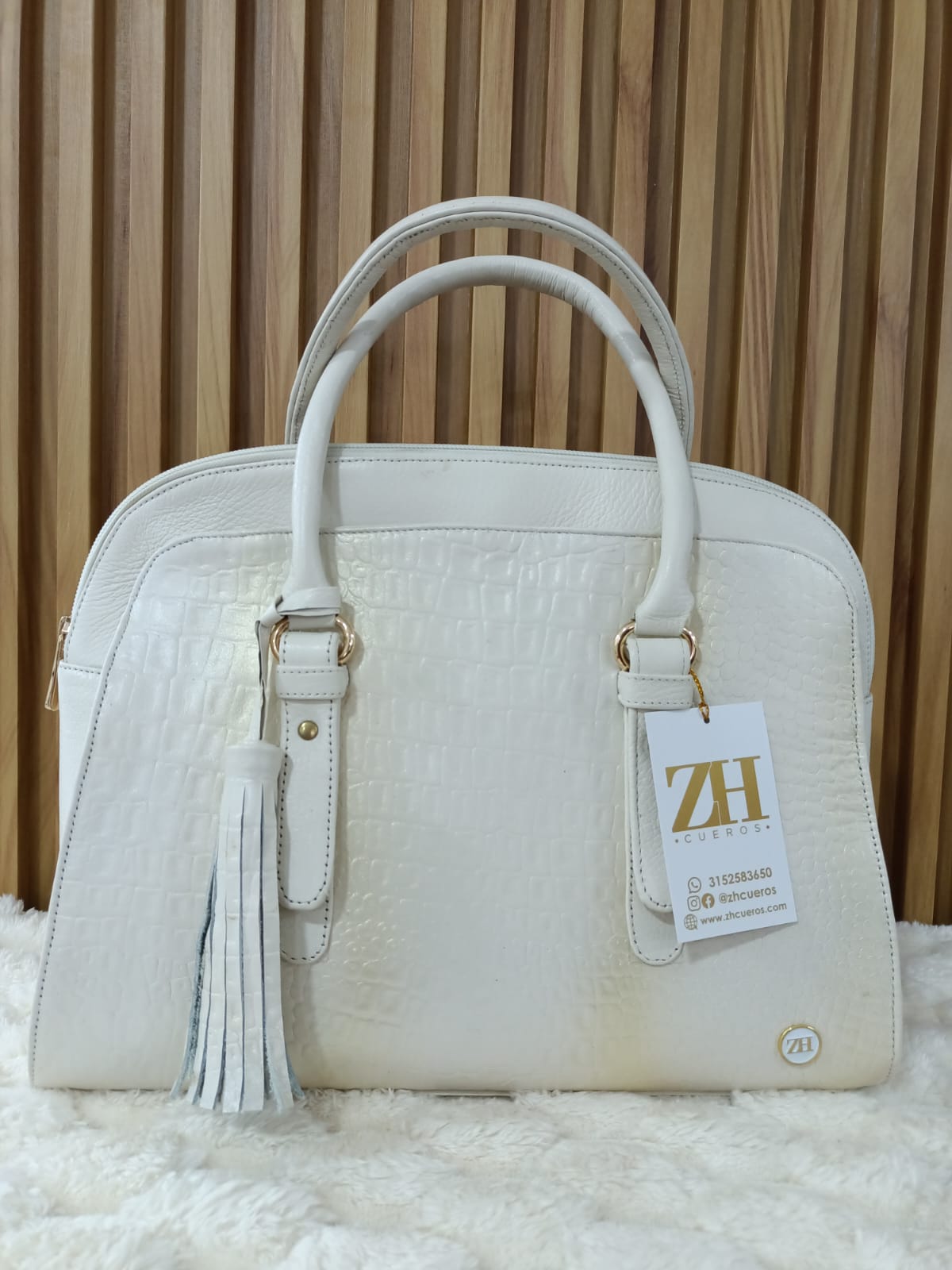 Elegancia en su máxima expresión. Este bolso en tono blanco con textura tipo croco es ideal para complementar tus looks más sofisticados.