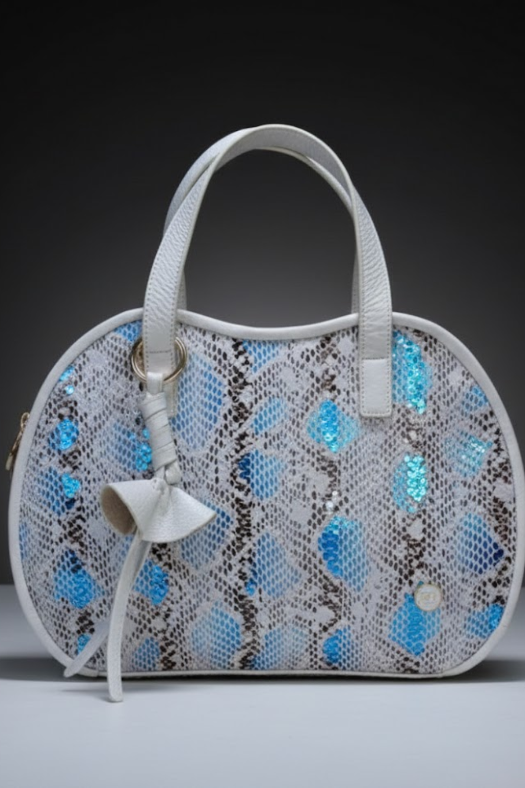 Con una silueta única y textura tipo pitón, este bolso es una pieza audaz hecha 100% en cuero legítimo colombiano, ideal para mujeres que quieren destacar con elegancia. Su brillo sutil y detalles metálicos lo hacen perfecto para el día o la noche.