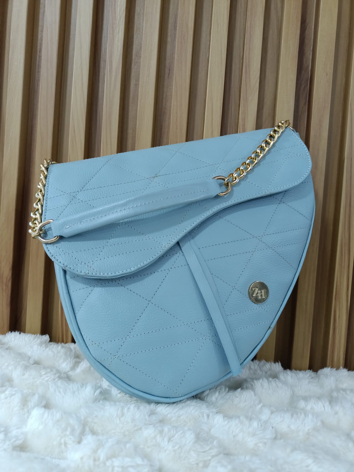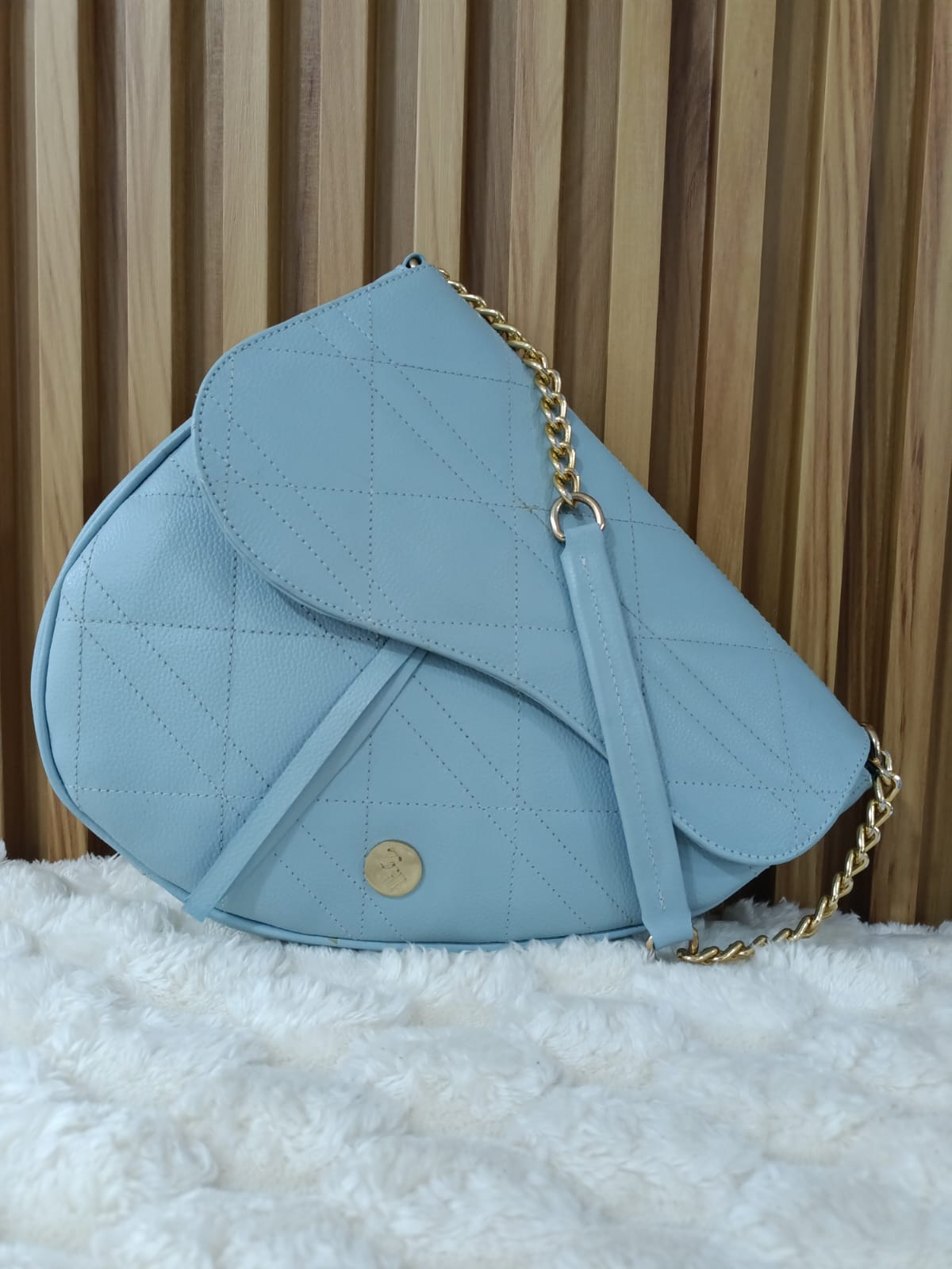 Carriel azul cielo elaborado en cuero, con correa ajustable para llevarlo como manos libres. ¡Perfecto para un toque de estilo y comodidad!