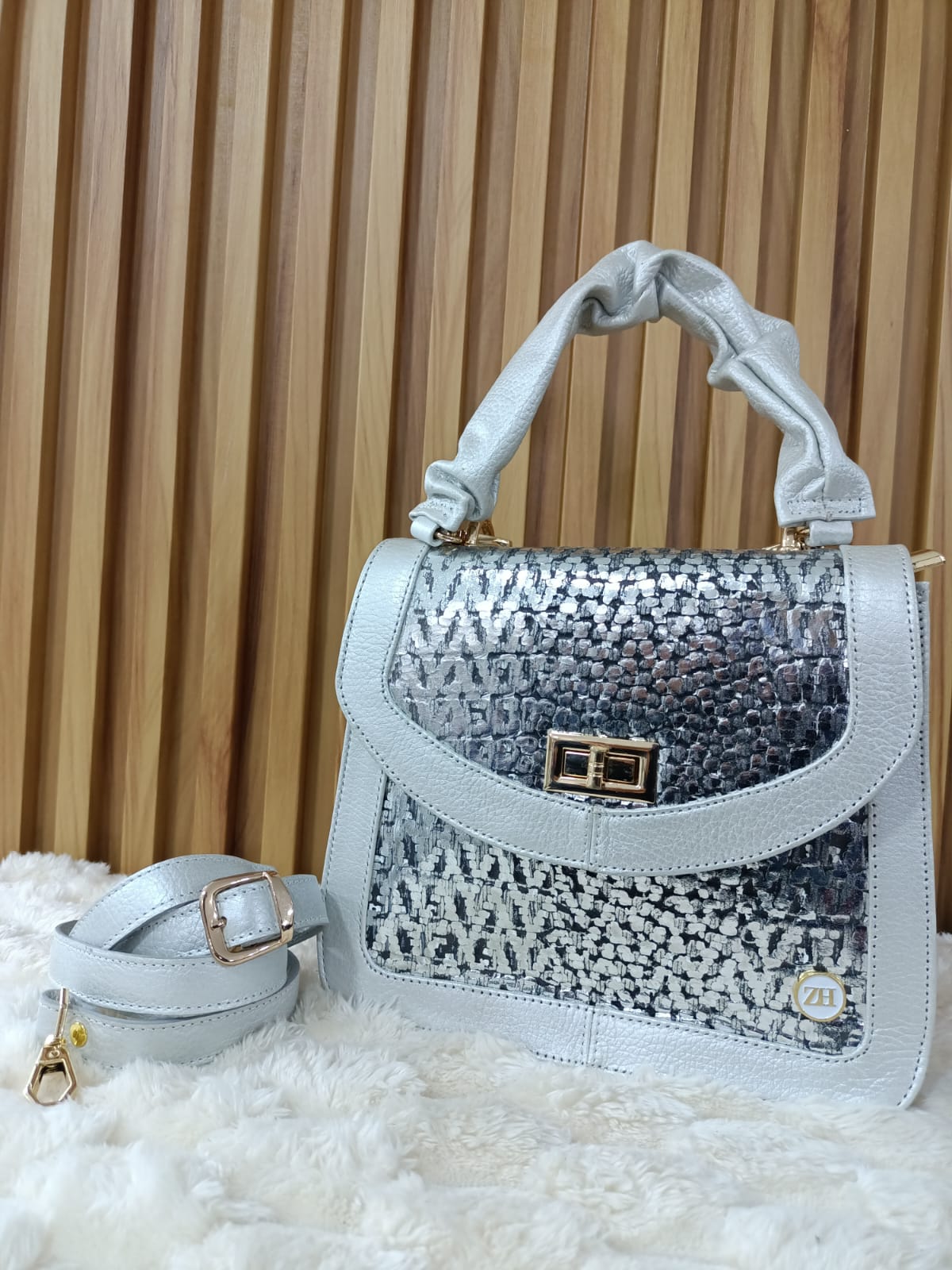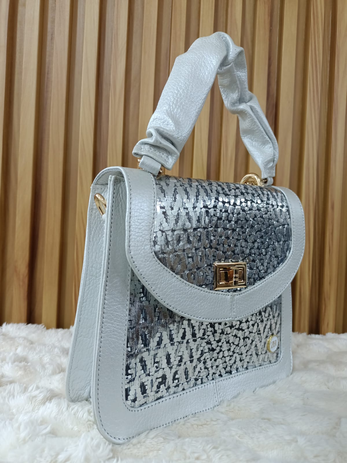 ✔️ Material: Cuero legítimo con acabado metalizado y textura especial.