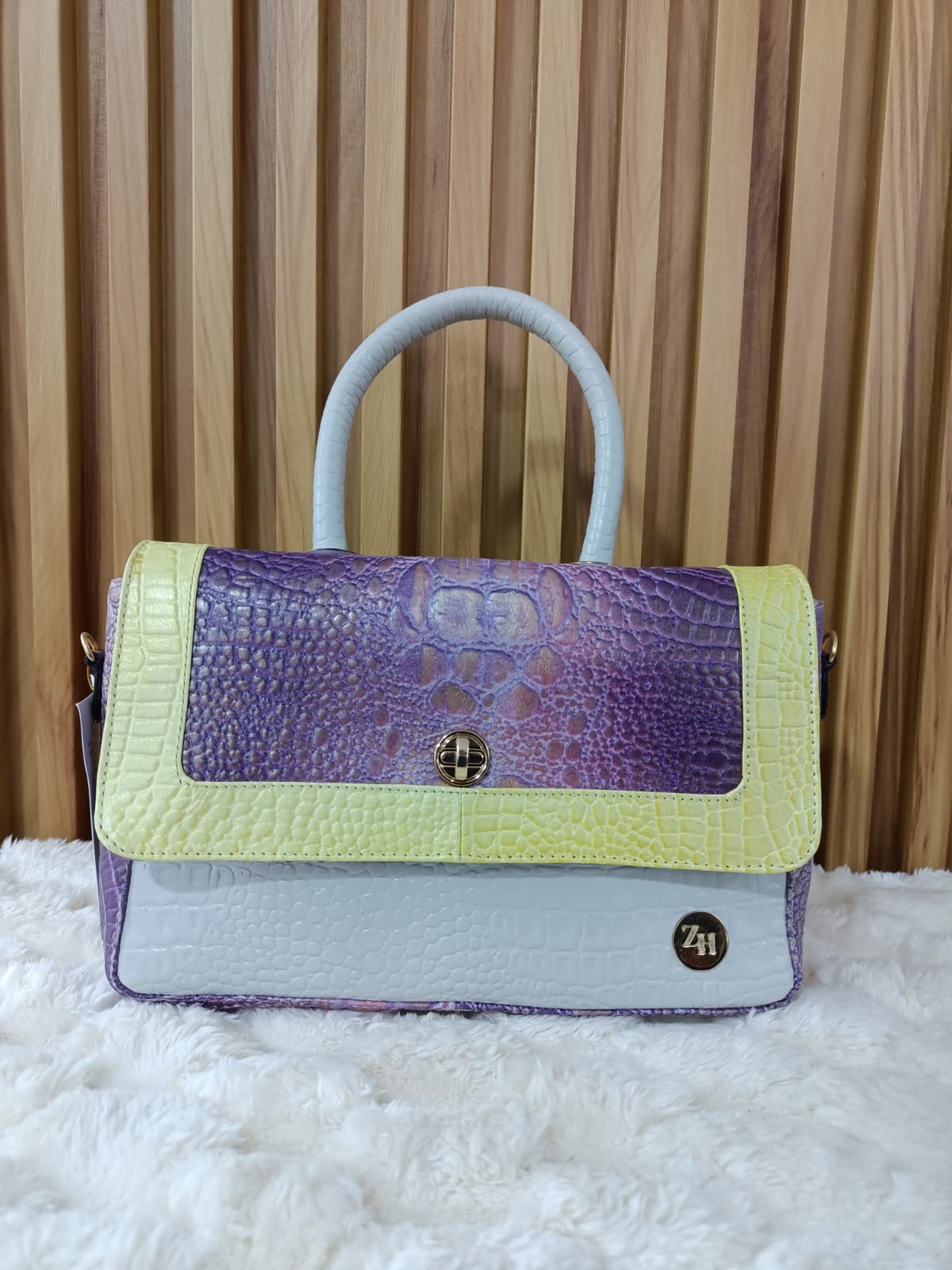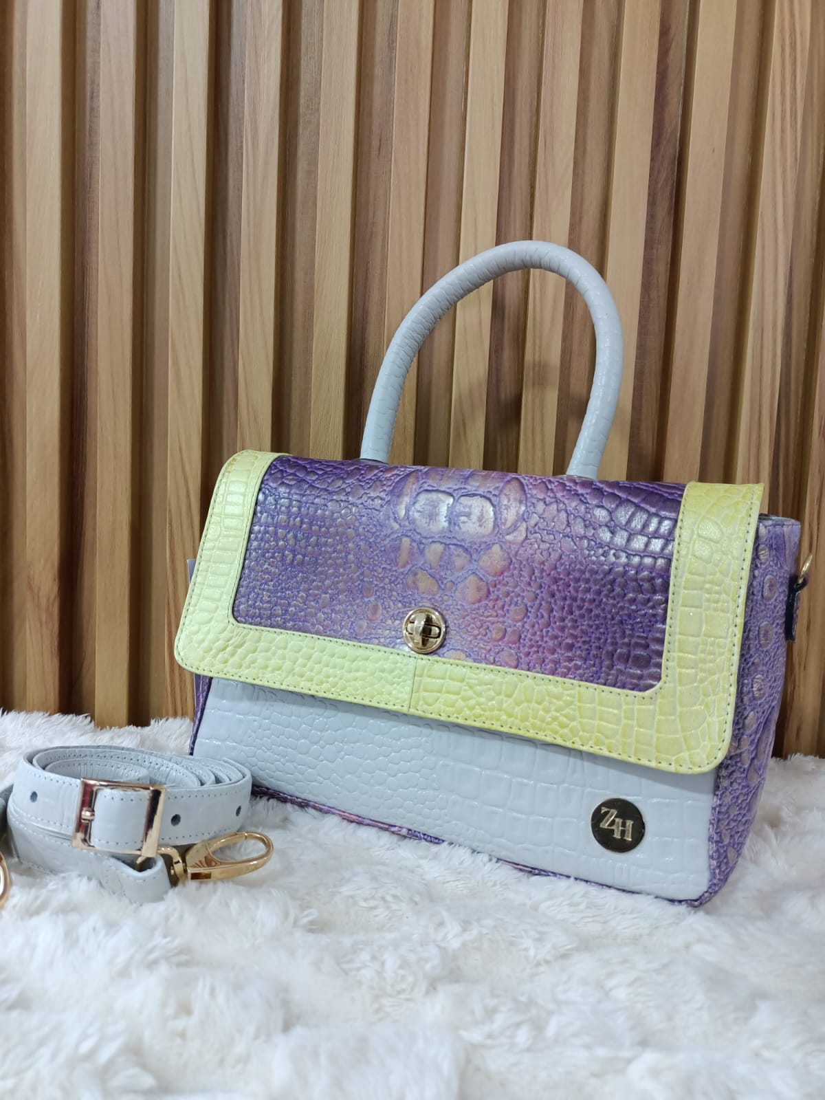 ✔️ Colores: Combinación de lila, amarillo y blanco con detalles metálicos.