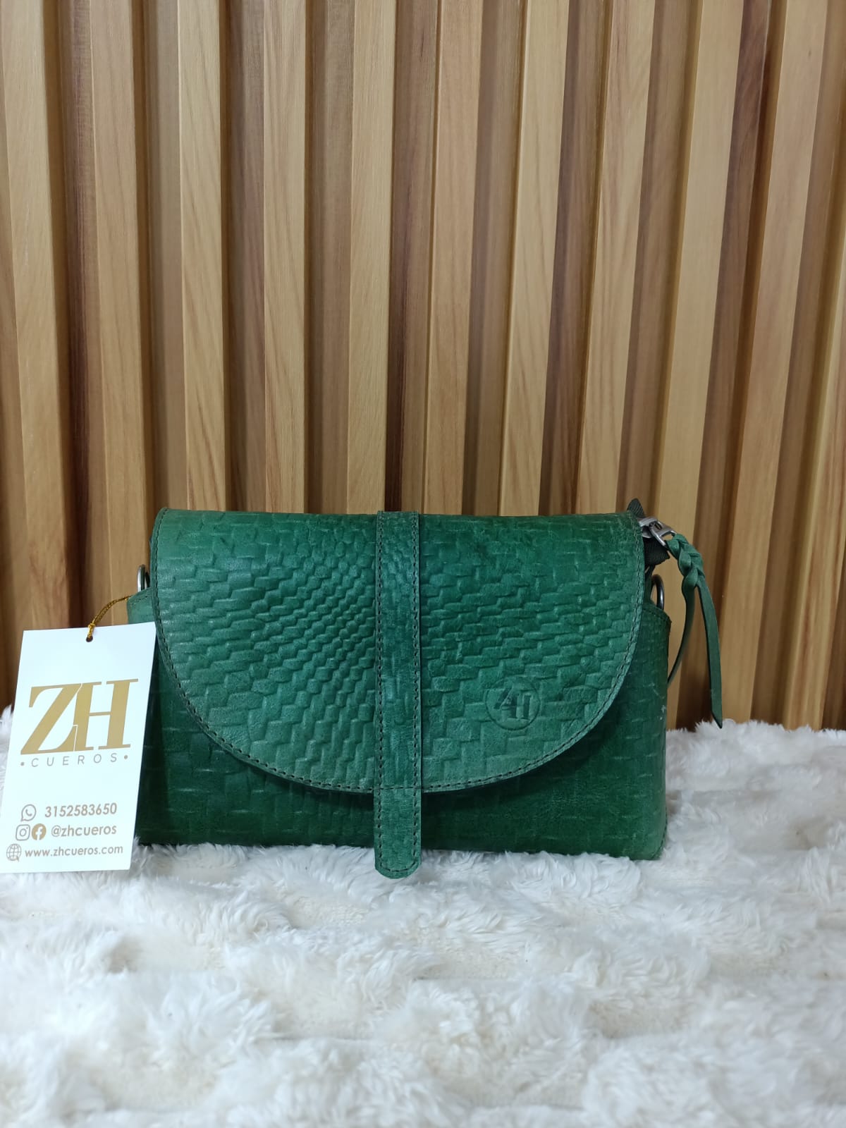 ✔️ Material: Cuero legítimo con grabado geométrico en relieve.