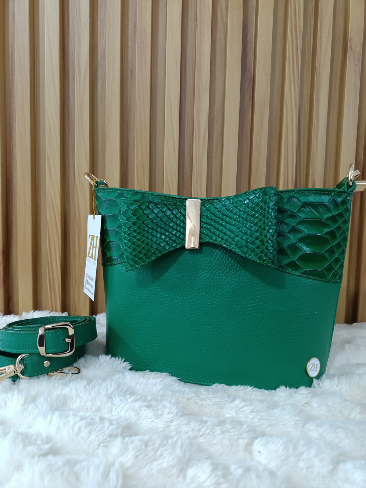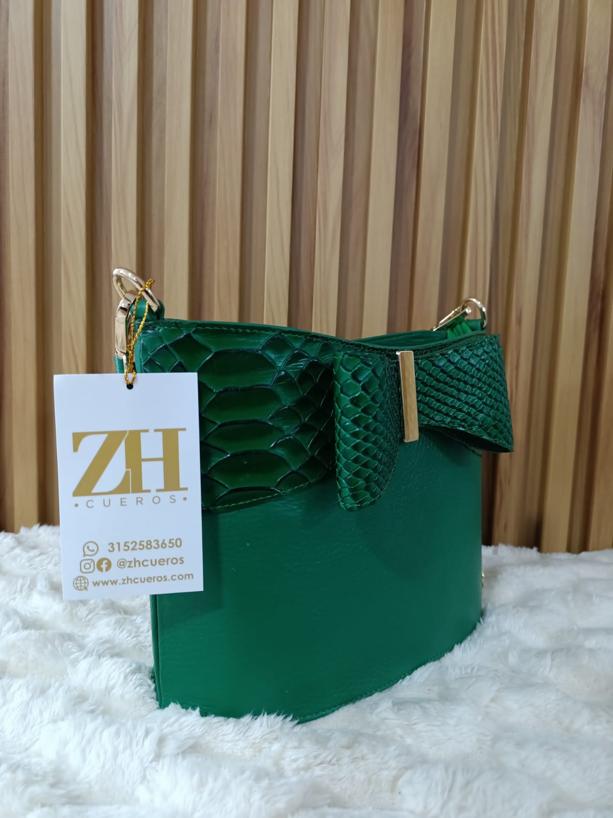 ✔️ Material: Cuero legítimo con detalles en textura tipo reptil.