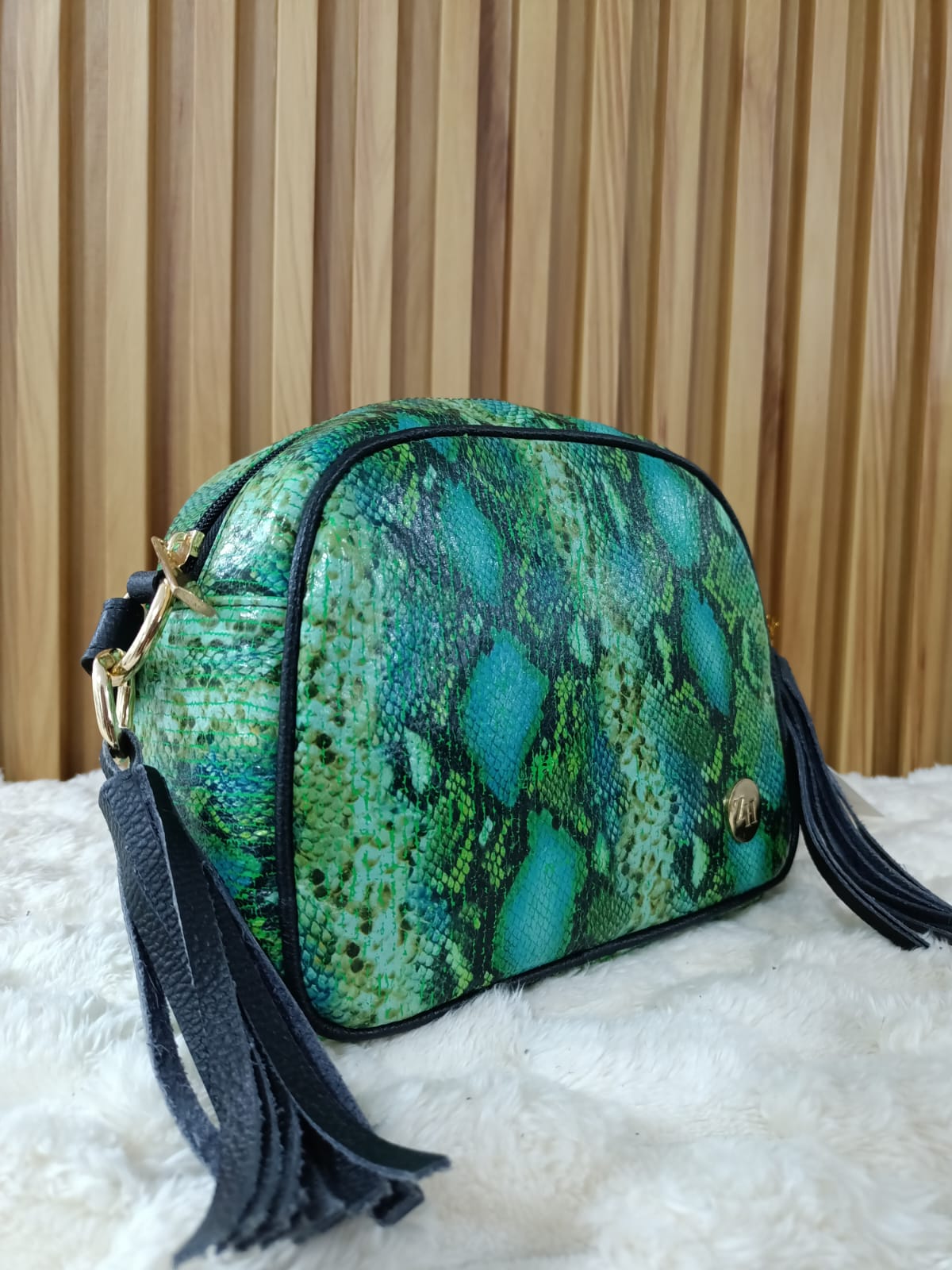 ✔️ Material: Cuero legítimo con acabado tipo animal print.