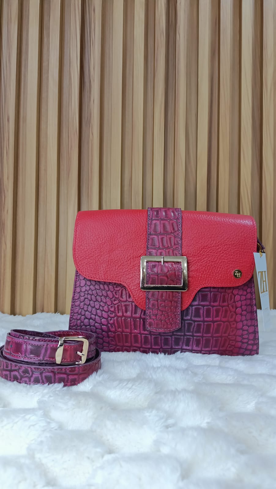 Un diseño audaz y sofisticado que combina el rojo vibrante con una textura elegante para un look impactante.