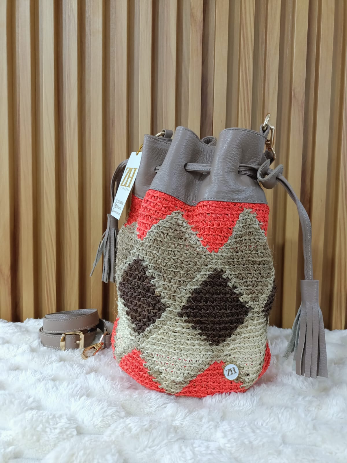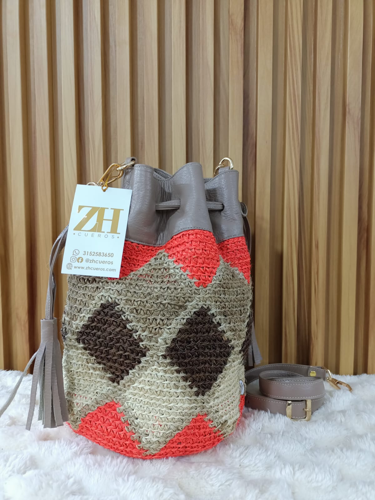 Materiales: Fique tejido a mano y cuero de alta calidad
