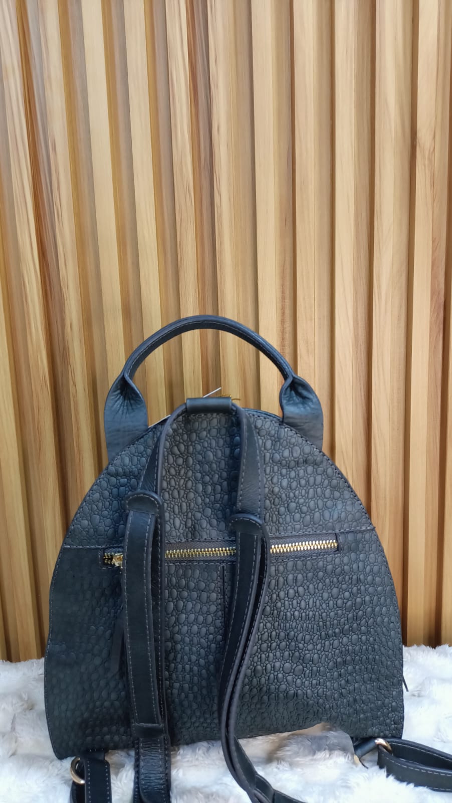 Compacto pero con carácter. Combina cuero legítimo con textura tipo escama, cremalleras doradas y diseño estructurado. Perfecto para quienes necesitan estilo y practicidad todos los días.