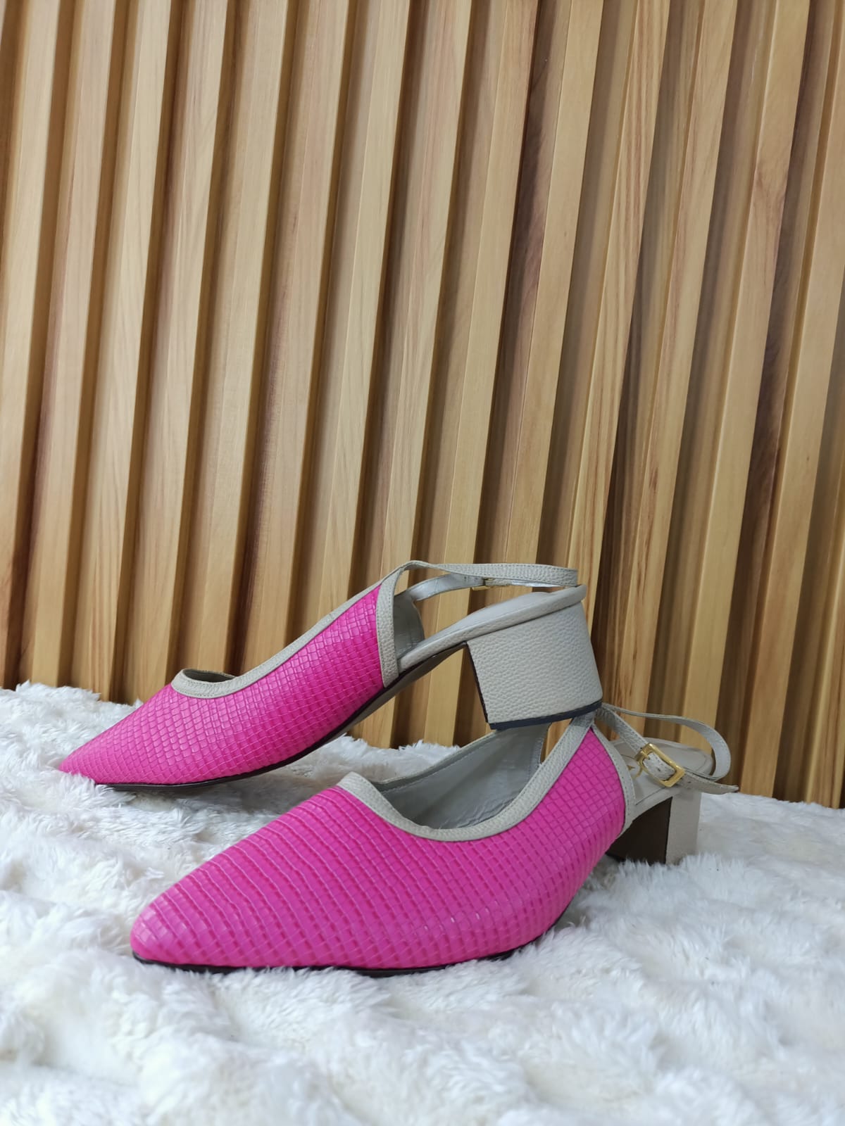 El Stiletto Fucsia es ideal para mujeres que aman destacar con estilo y confianza. Su vibrante tono fucsia y su diseño slingback con tacón bajo lo convierten en una opción perfecta para un look moderno y sofisticado.