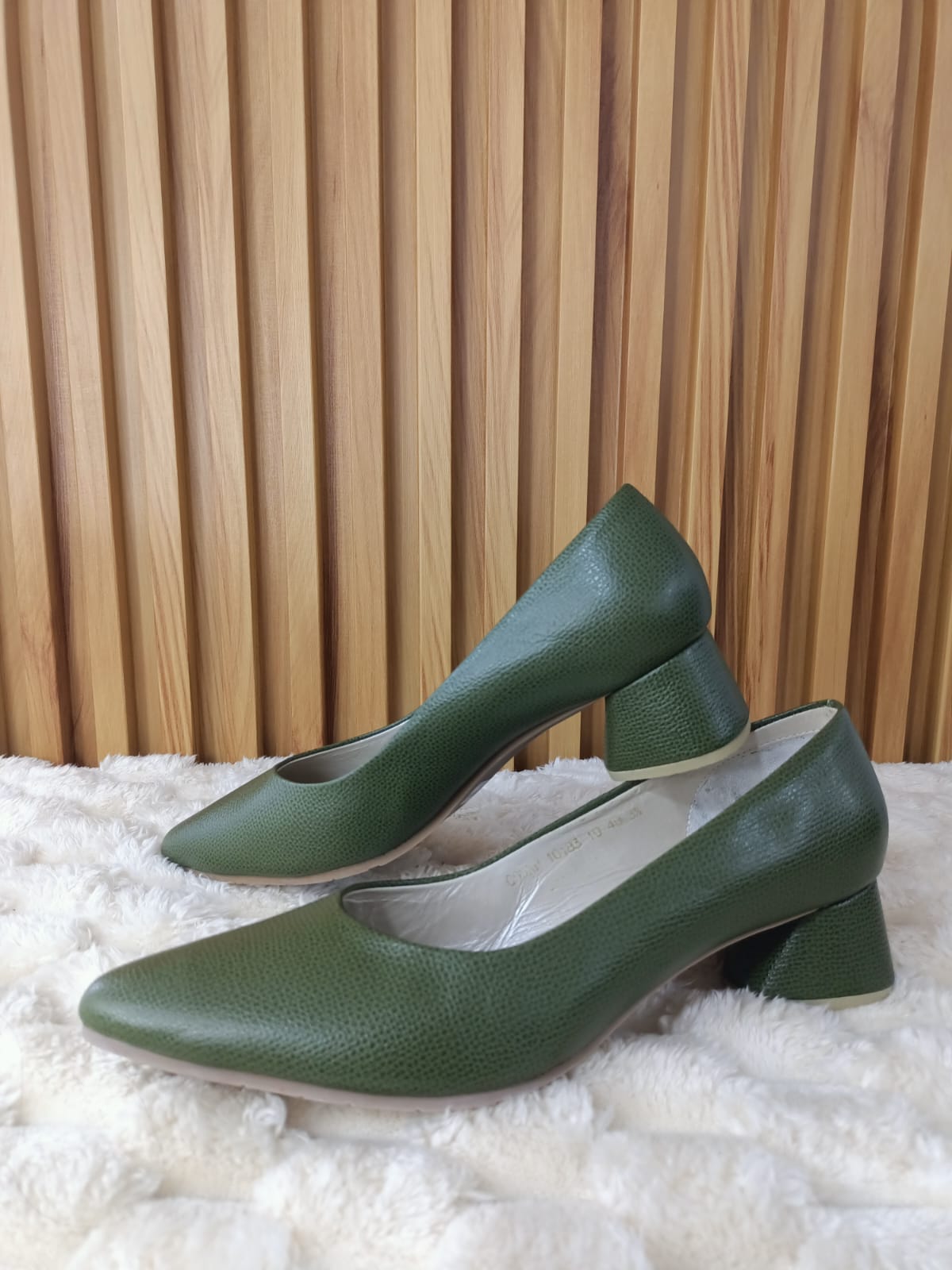 Un toque de sofisticación en un color único. El Stiletto Verde Oliva es perfecto para quienes buscan elegancia con un estilo diferente y versátil. Su tacón bajo ofrece comodidad para el día a día sin perder distinción.