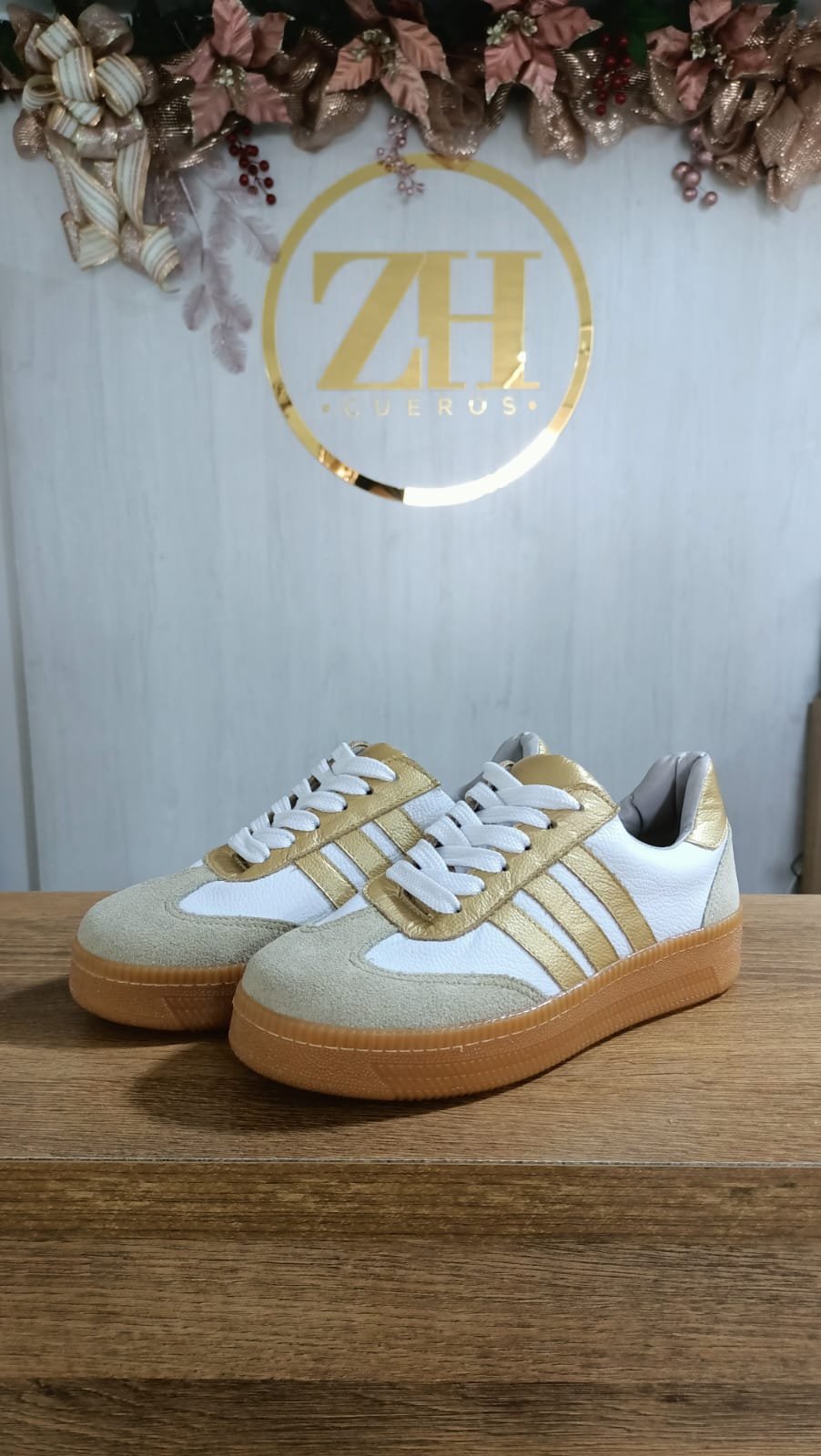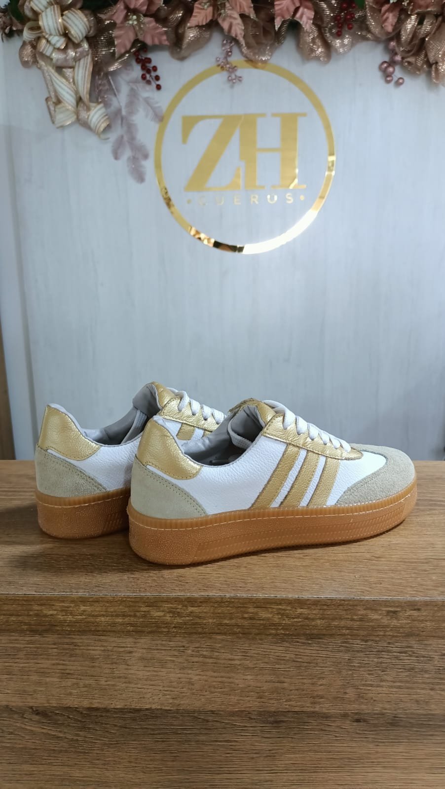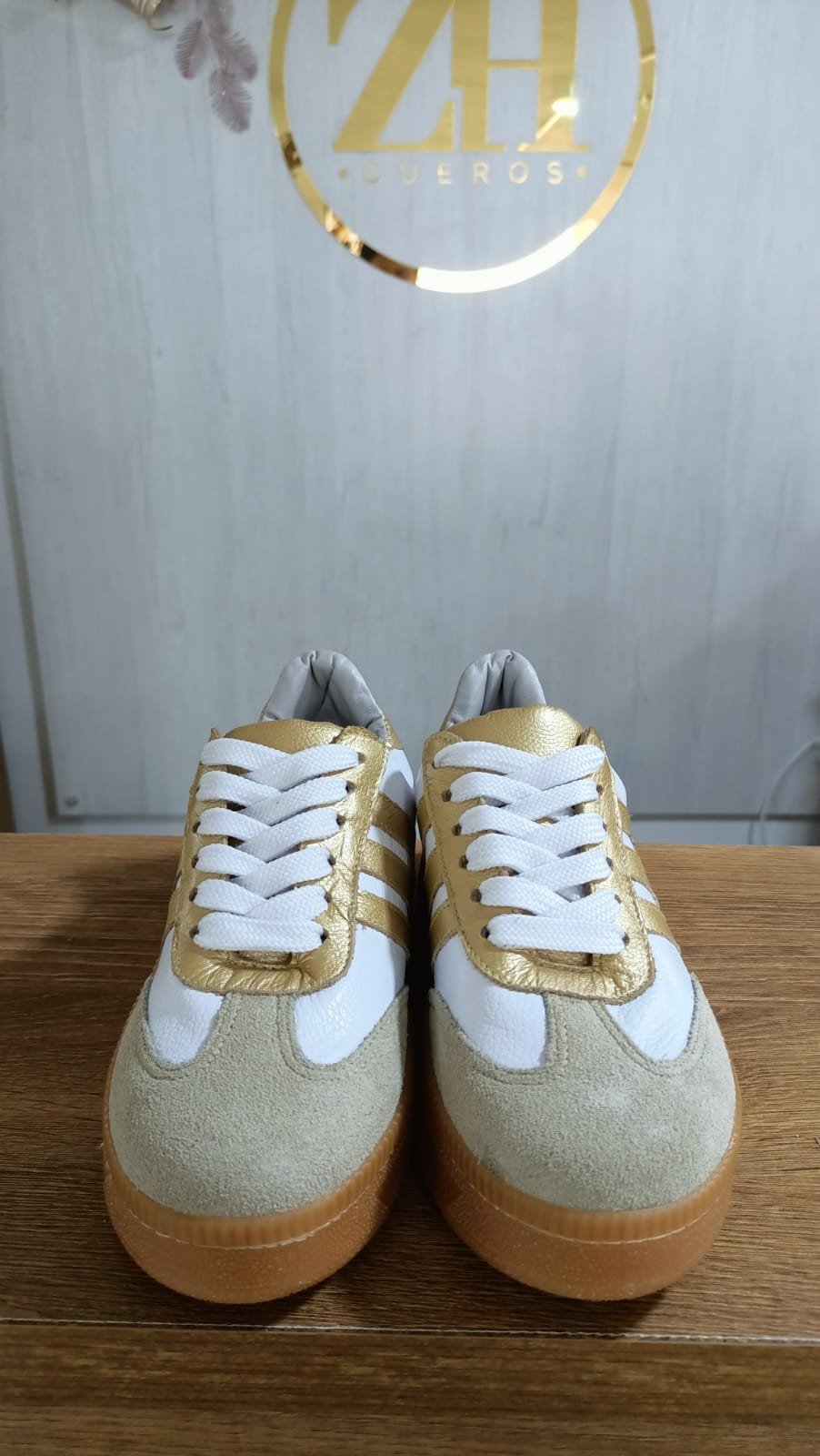 Este diseño es la representación perfecta de la luz y la elegancia natural. Creado para mujeres que buscan destacar con sutileza, este calzado combina la pureza del blanco con destellos dorados, logrando un equilibrio impecable entre lo artesanal y lo contemporáneo
