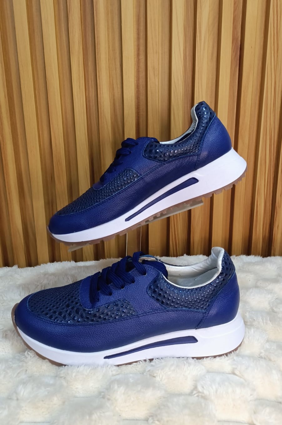 Color: Azul profundo con detalles en blanco y suela blanca