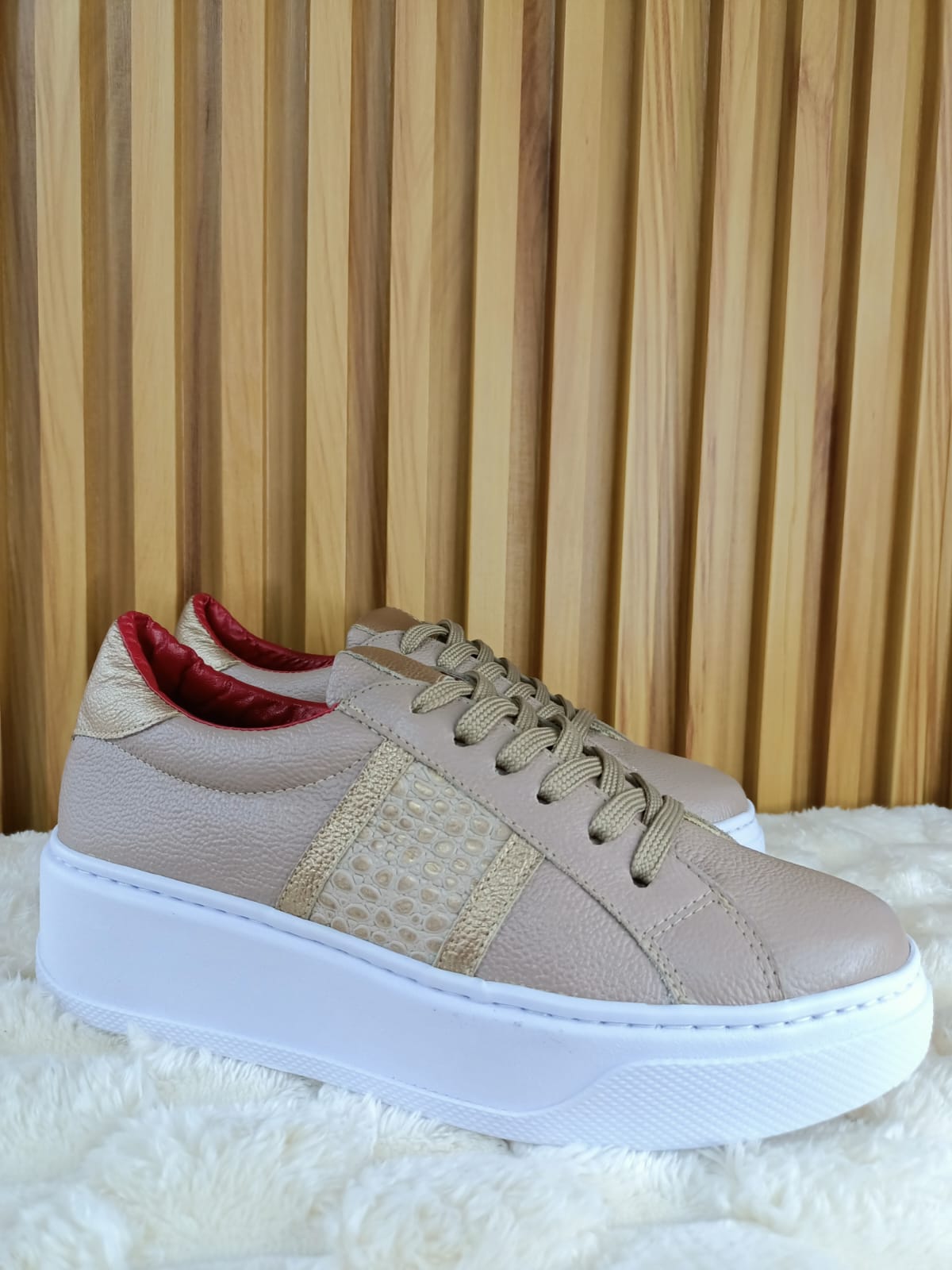 Un modelo sofisticado que combina diseño y confort. Los Tenis Pardo Redondo están elaborados en cuero legítimo con una mezcla de texturas en tonos neutros, resaltando su elegancia y versatilidad. Su plataforma blanca aporta altura y un estilo moderno sin sacrificar comodidad.